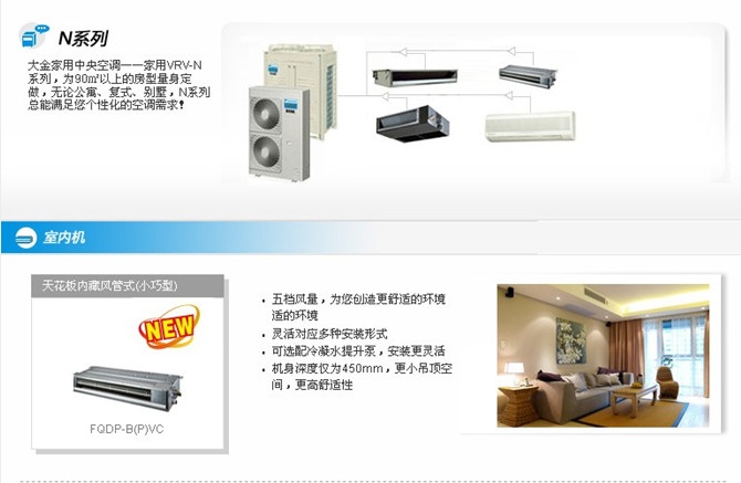 新款上市的”高效耐久廚房專用機(jī)組“、”衛(wèi)浴用嵌入式“、”溫濕平衡3D氣流風(fēng)管式“、‘PM2.5凈化超薄風(fēng)管式’、‘純效新風(fēng)凈化超薄風(fēng)管式’的大金全效中央空調(diào),突破以往空調(diào)的限制,從”溫度、濕度、氣流、清潔度“,四維一體的全效空氣調(diào)節(jié),賦予家用中央中央空調(diào)全新定義。